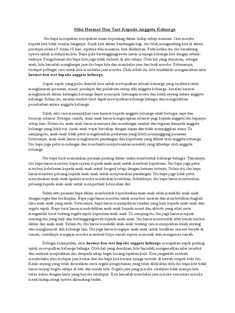 Nilai Hormat Dan Taat Kepada Anggota Keluarga Pdf